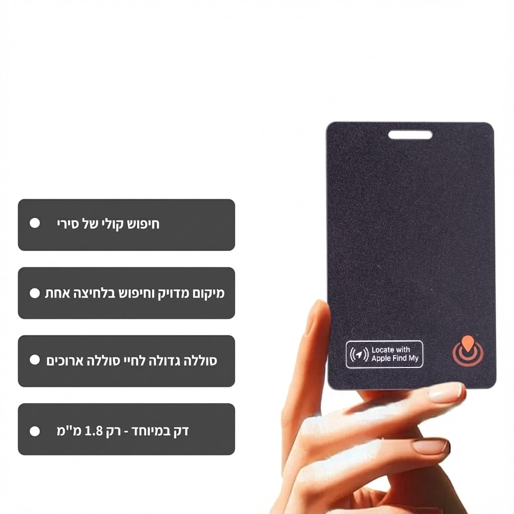 כן. ניתן למקם את הכרטיס ברכב ולעקוב אחרי המיקום שלו דרך Find My – פתרון מצוין למי שמחנה במקומות גדולים או משתנים.